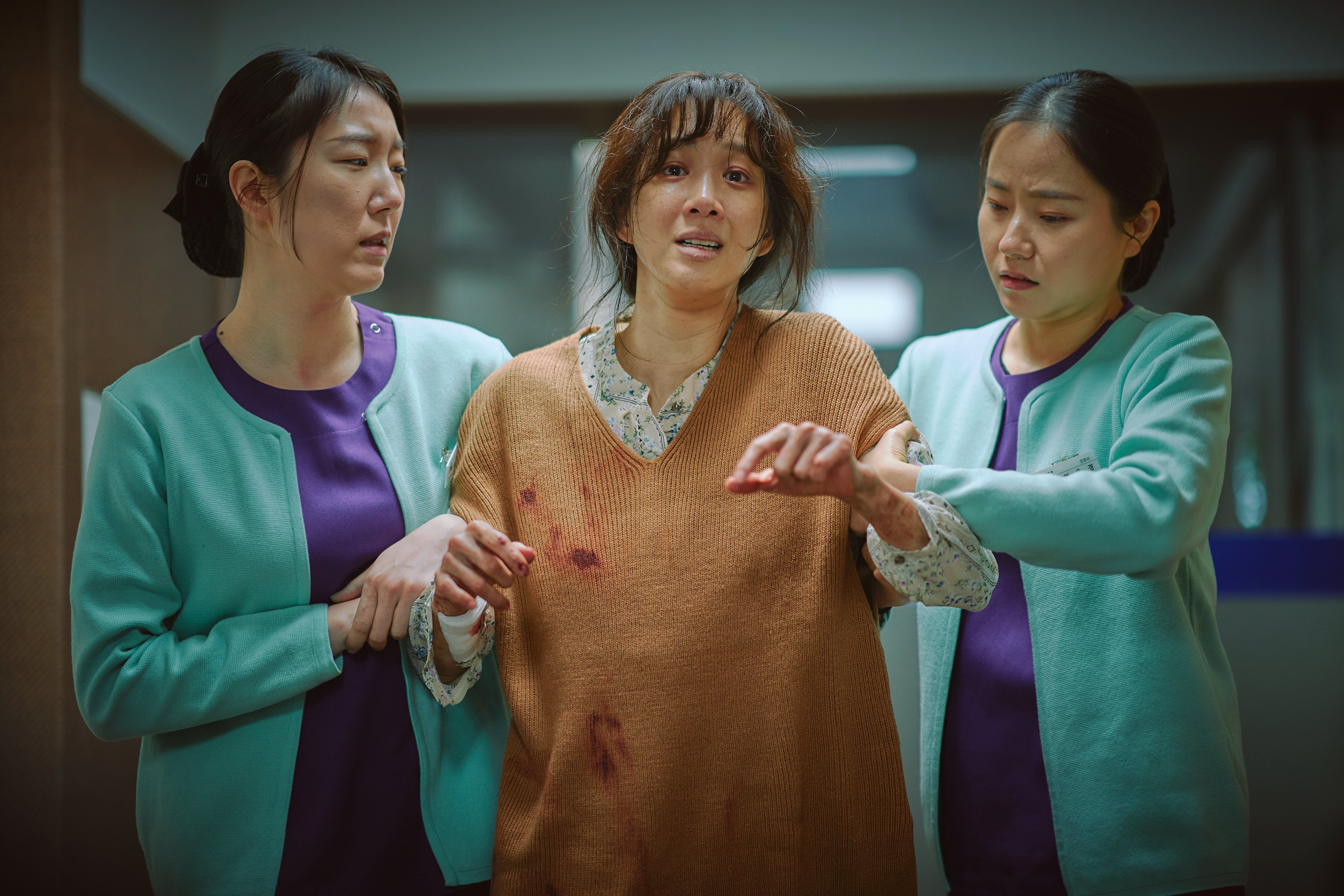 The newly released stills capture the raw intensity between the two leads. Jung Ryeo Won, dressed in bloodstained clothes and trembling with confusion as she gives her statement, conveys the disoriented fear of a woman trapped between memory and reality. Meanwhile, Lee Jung Eun’s piercing eyes, firm composure, and fleeting look of empathy as she questions Do Kyung reveal the depth and complexity of her performance.