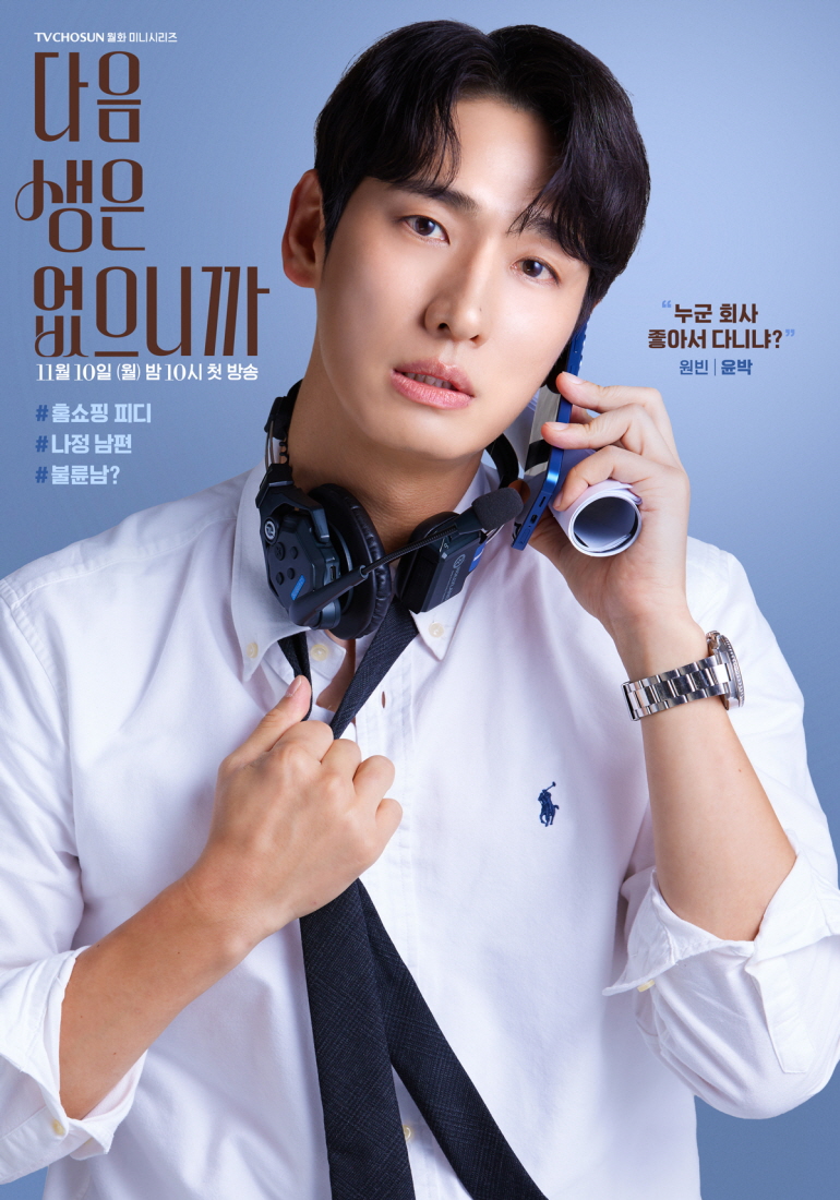 Yoon Bak takes on the role of Noh Won Bin, Na Jung’s husband and a home shopping PD. With a headset around his neck and a phone in hand, his poster depicts his hectic daily life. The quote “No one works because they love their job” conveys the weary burden of responsibility he carries as a breadwinner, while the hashtag “Unfaithful husband?” raises curiosity about his true story.