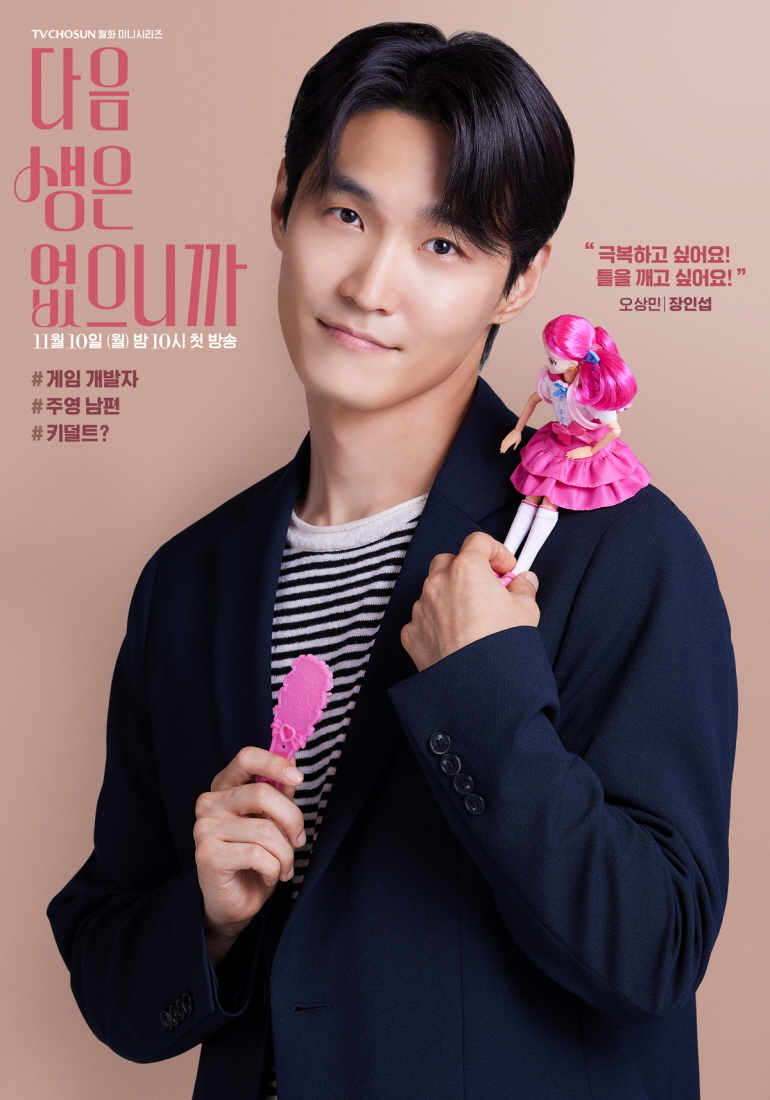 Finally, Jang In Sub portrays Oh Sang Min, a well-educated game company executive and Gu Joo Young’s husband. Holding a pink stuffed toy and a hairbrush, his poster gives off a quirky yet endearing vibe. The words “I want to overcome it! I want to break free!” alongside the hashtag “Kidult?” spark curiosity about the hidden side of his character.