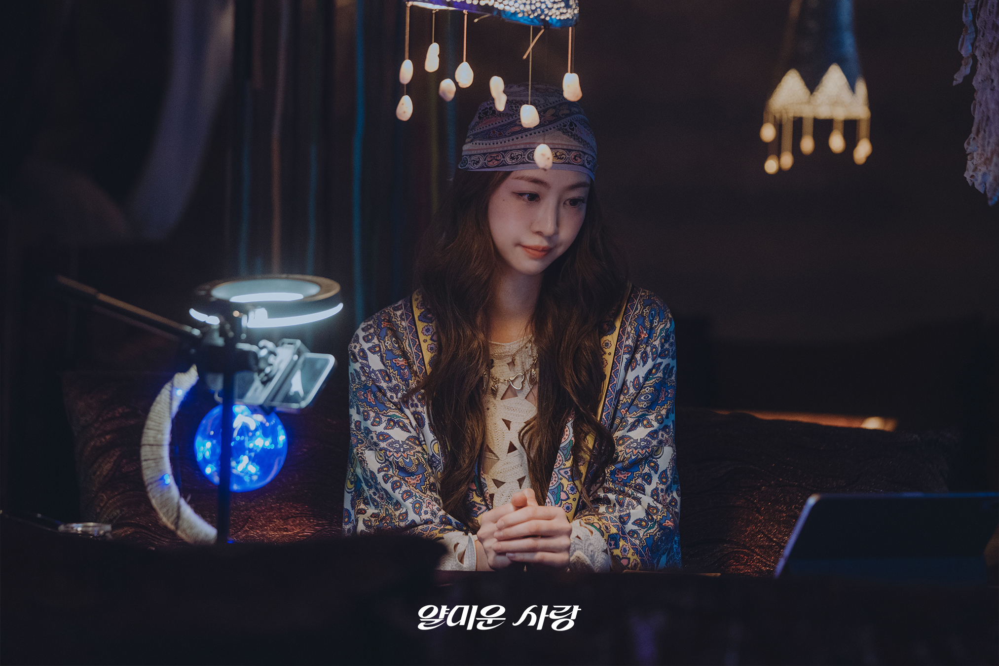 The stills below show Lim Hyeon Jun having an online meeting with a tarot reader (played by Dasom), sparking further intrigue. Feeling frustrated by a situation where nothing seems to go right, Hyun Jun decides to entrust his fate to a tarot reading, sparking curiosity about what message the cards will reveal to him.