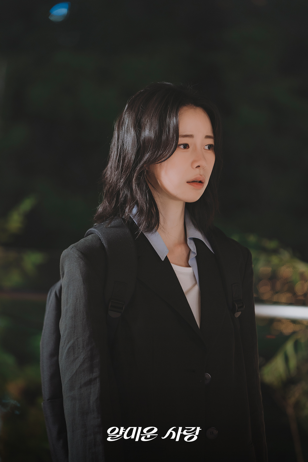 Another image shows Wi Jeong Sin anxiously waiting for someone. Her unusually tense expression hints at an impending, unsettling truth, heightening the tension.