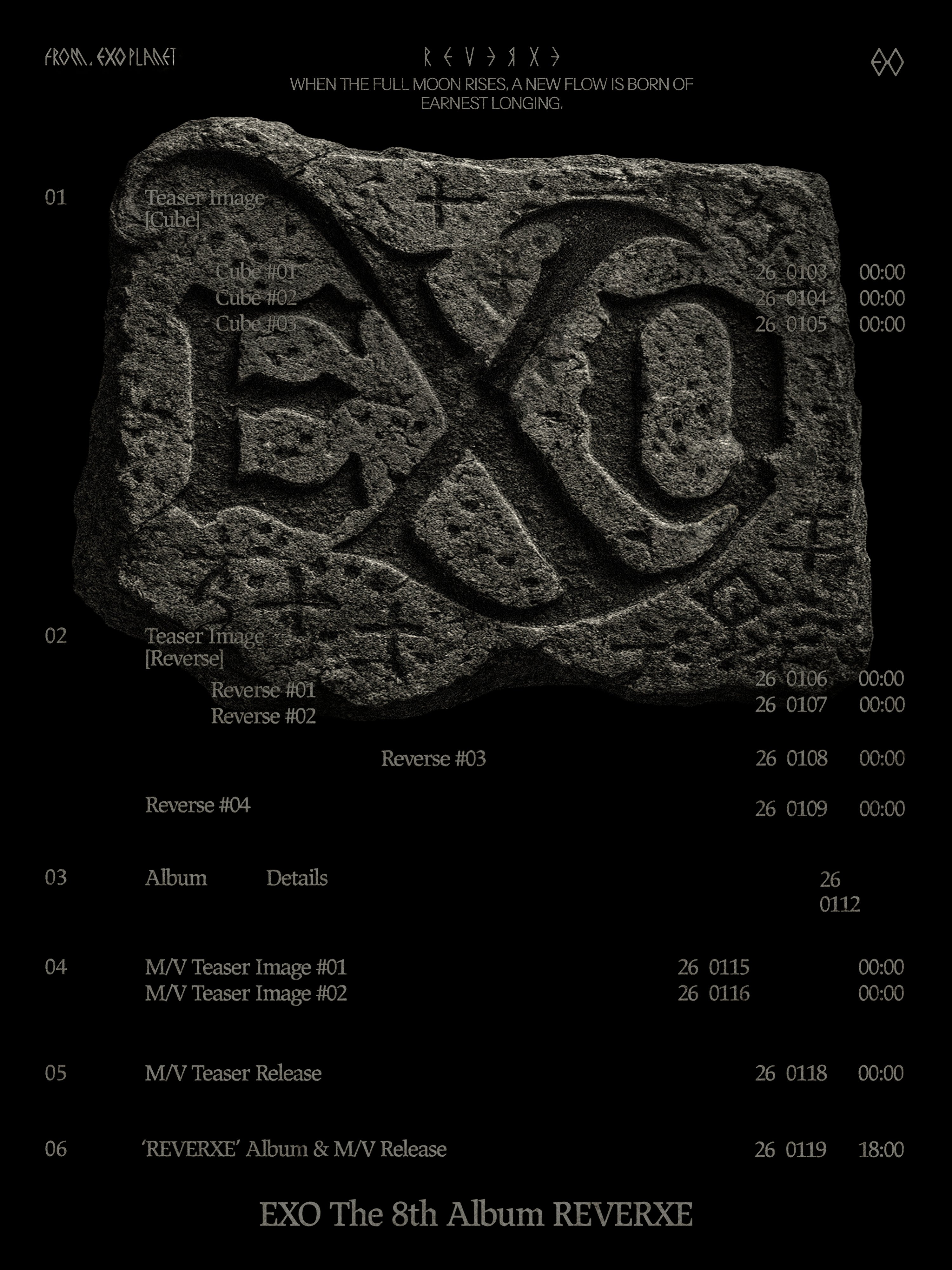A release timeline has been revealed for EXO’s upcoming album “REVERXE”!