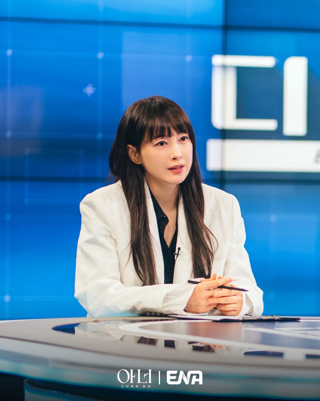 The stills show Lee Na Young’s layered expressions, giving a deep sense of her character. Dressed in a sharp black-and-white lawyer’s outfit, Ra Young appears in a news studio, showing a determined expression and untouchable aura. In one still, she focuses intently on her work, while in another, her straight-ahead gaze reveals a cold charisma, suggesting she would be a formidable presence for anyone she meets.