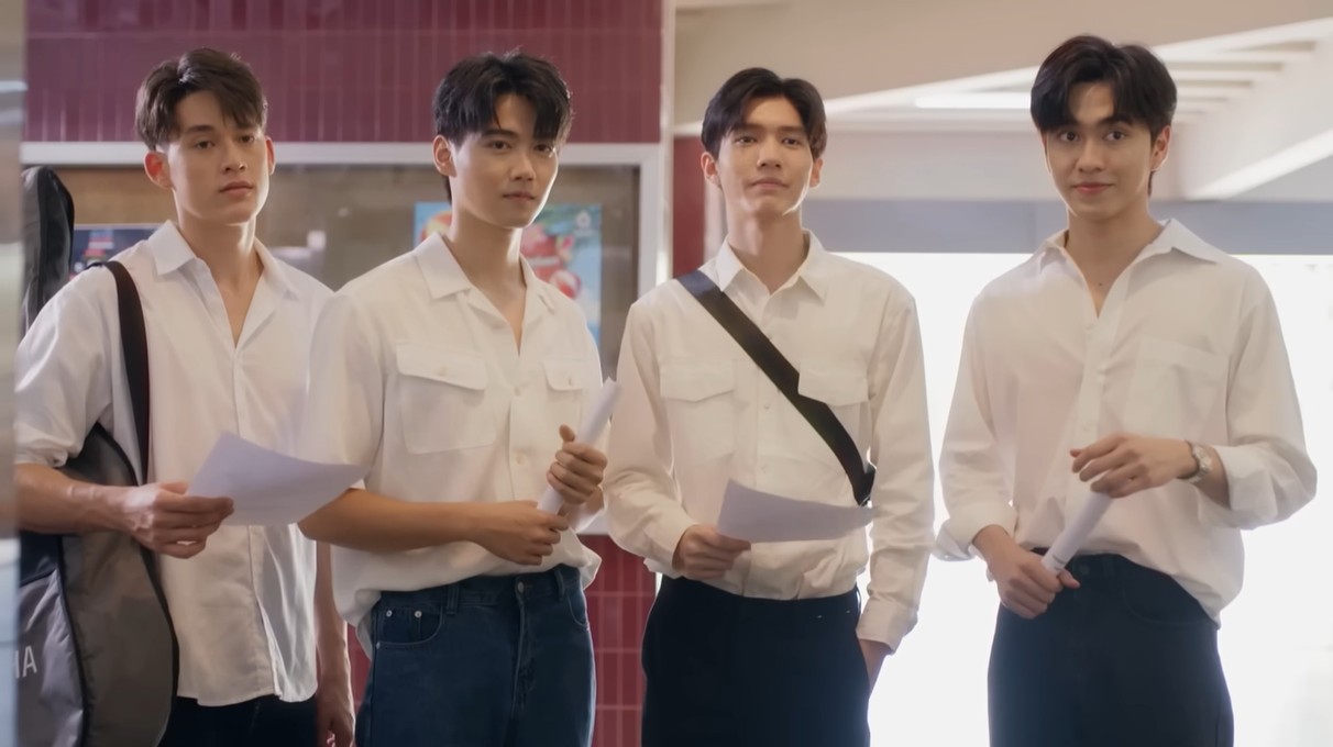 Cut to the present, where Pharm (Fluke Natouch) is a freshman just trying to get through orientation day without another breakdown, while Dean (Ohm Thitiwat) is a quiet, serious upperclassman leading the swim team. They don’t officially meet yet; they just catch sight of each other, but that tiny moment hits both of them way harder than it should.