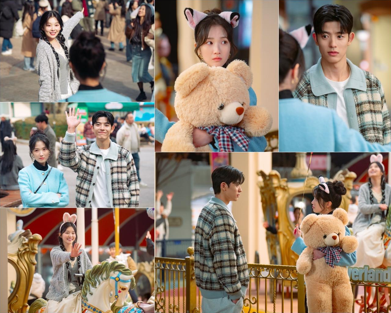 However, Eun Ho’s standoffish expressions contrast starkly with the adorable headband on her head and the giant teddy bear in her arms, raising the question of whether she’s enjoying herself more than she’s willing to let on.