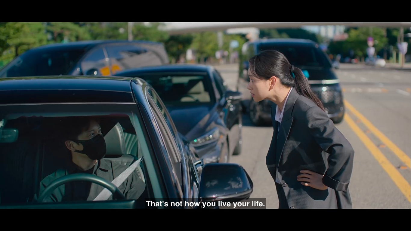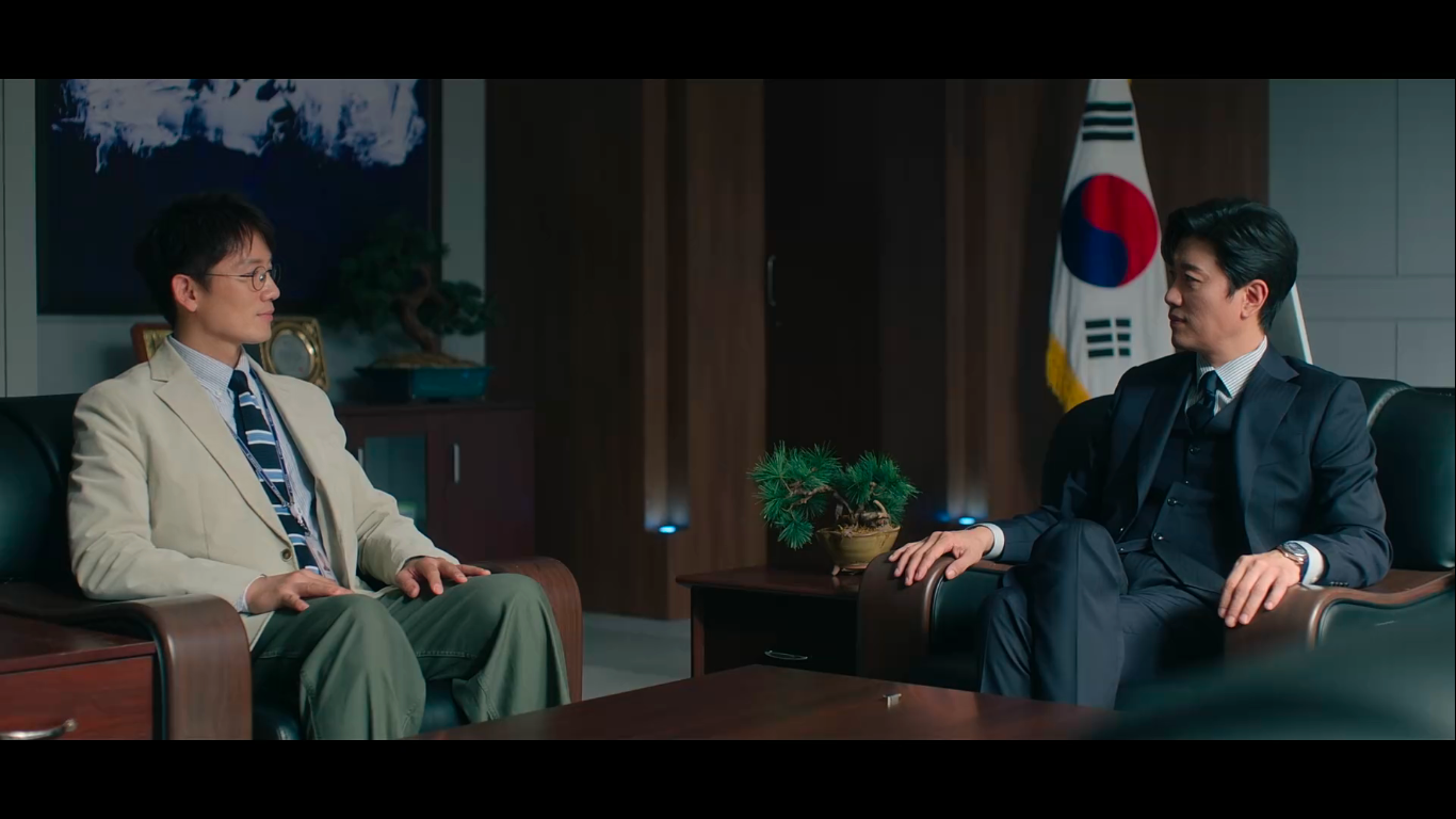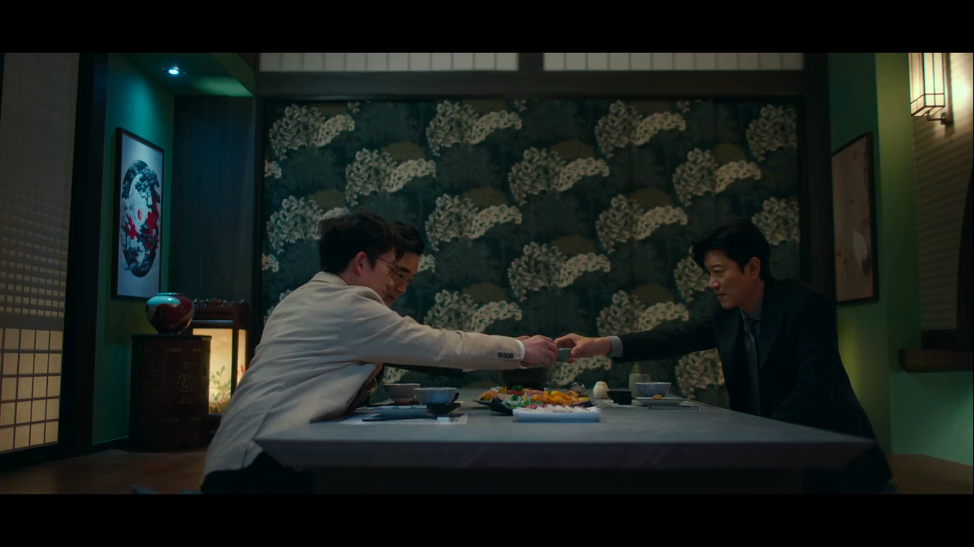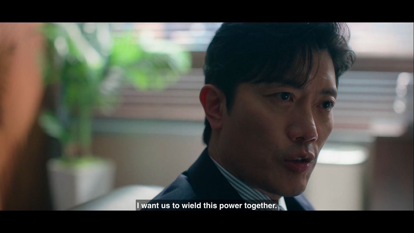In a team effort, they are able to trick one of Kang Sin Jin’s aides to make him invest some of their dirty money and steal a large sum right under their noses. At some point, they even seem more like a money heist group than actual prosecutors and a judge. And it is so satisfying to watch. Even if there’s no romantic chemistry like it happens in some other legal dramas, their chemistry as a group is more than enough. Of course, this is barely a minor setback for Kang Sin Jin, who doesn’t hold back from retaliating against his subordinate, but this little scheme does prepare the field for Han Young’s next move.