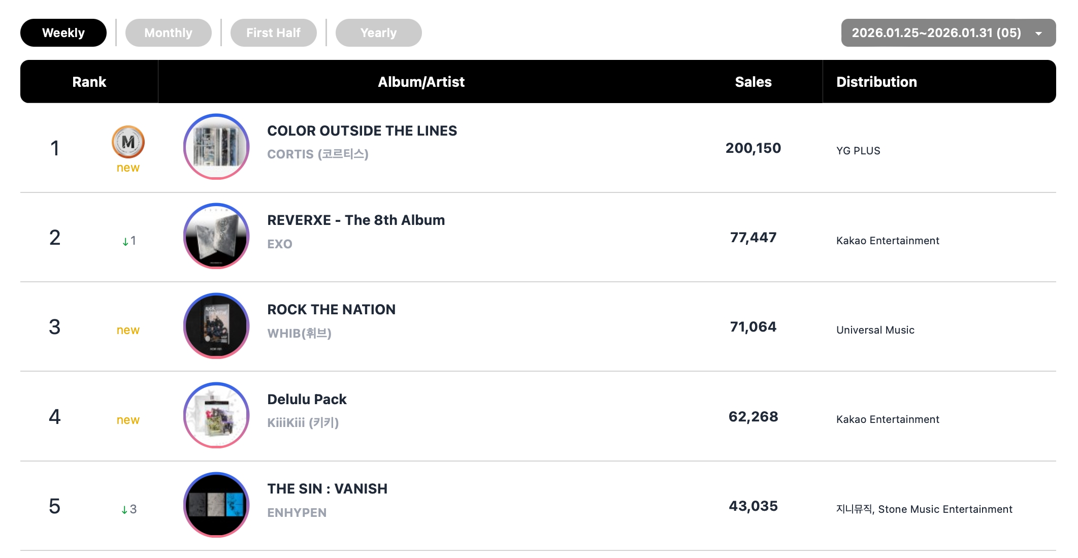 Finally, ENHYPEN’s latest mini album “THE SIN : VANISH” rounded out the top five for the week.