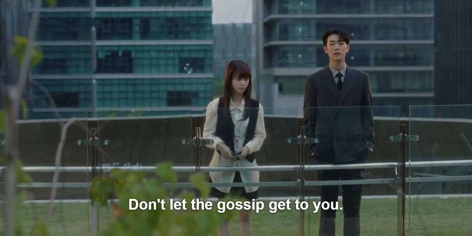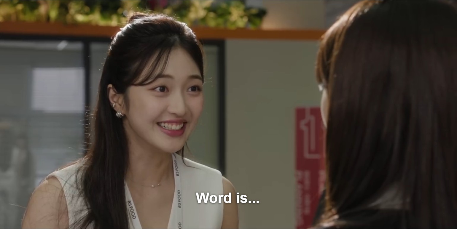 As hardworking and good at her job as she is (and with a little help from Tae Hyung), Hyun Jin easily succeeds. And the good news comes: her best friend (Choi Gyu Ri), who also works at the company, hears from an HR connection that Hyun Jin is in the running for a full-time position, and her name is at the top of the list.