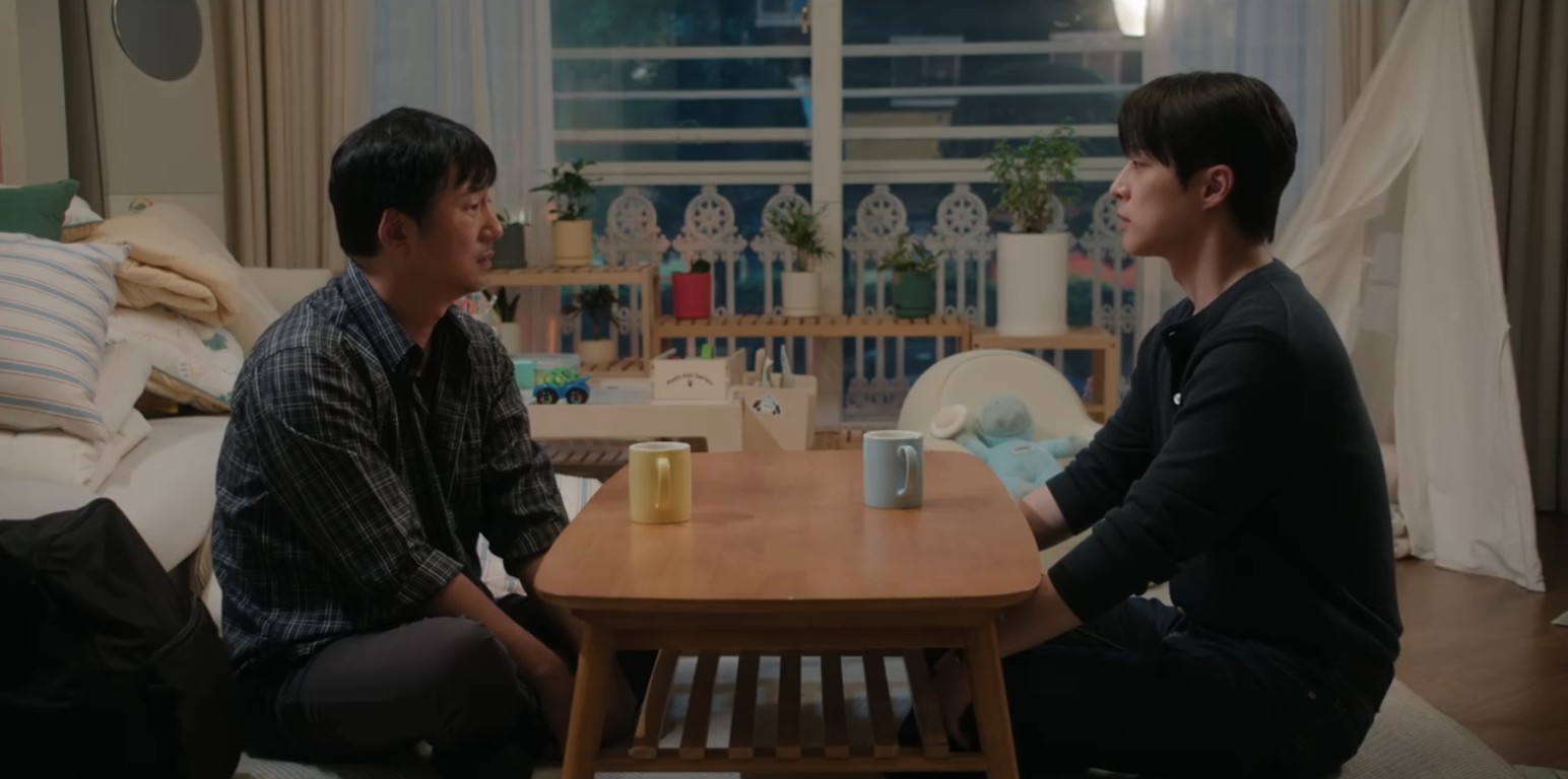Tae Hyung slowly starts warming up to him after he helps during Woo Joo’s allergic reaction, despite being the only one in the beginning who is suspicious of his father’s intentions. Hyun Jin and their neighbors even end up encouraging him to forgive and reconnect.