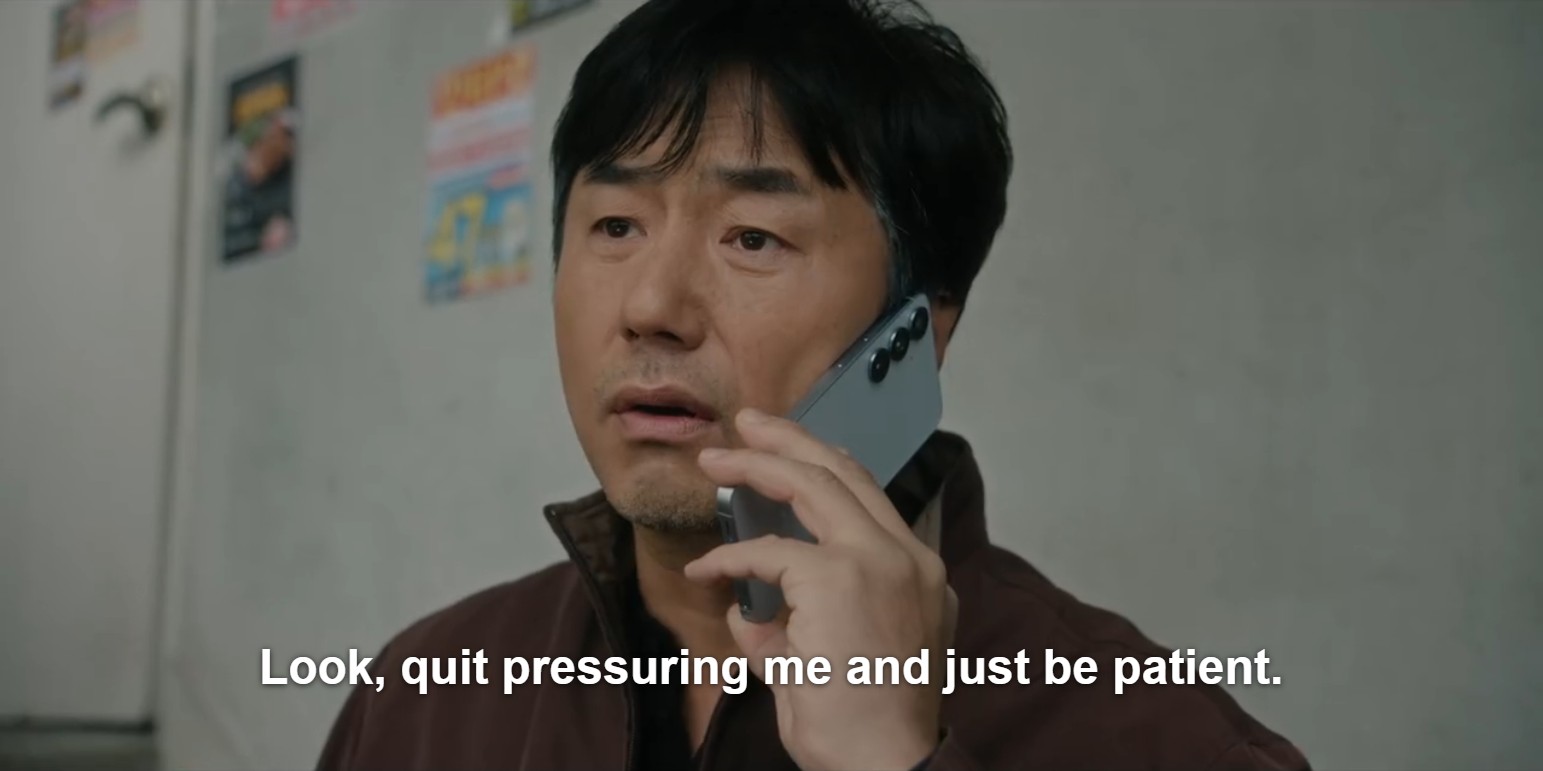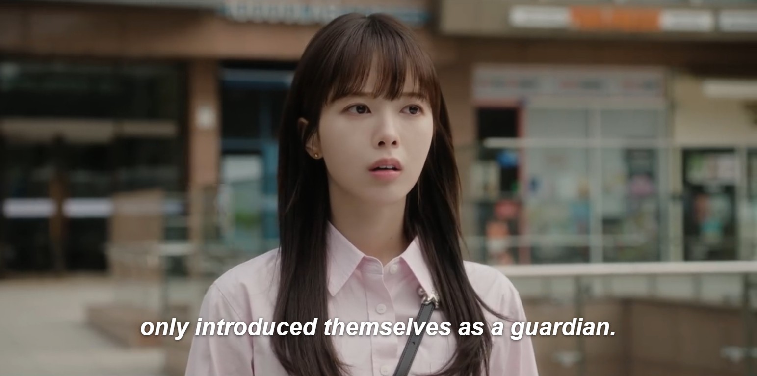 When Hyun Jin is doing the insurance paperwork, she learns that another “guardian” has been inquiring about the policy, but the insurance worker describes him as a middle-aged man.