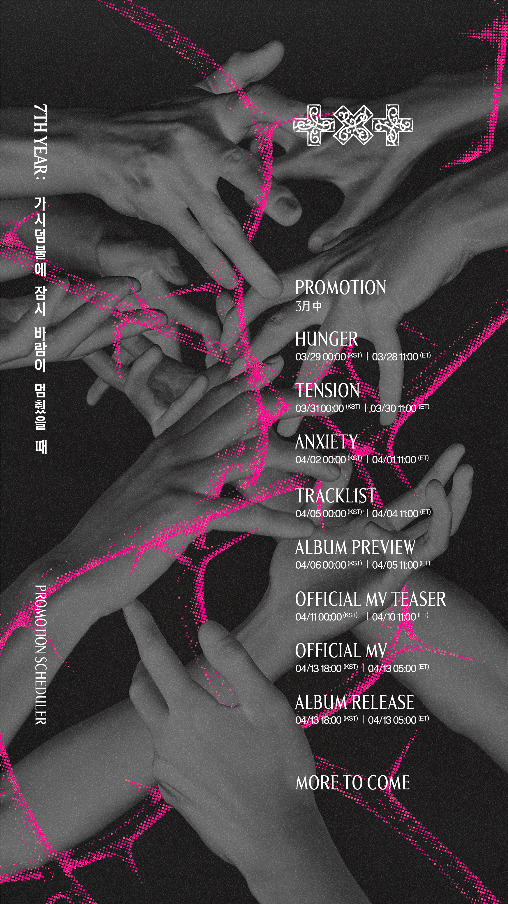 TXT has released a promotion schedule for their upcoming comeback with “7TH YEAR: A Moment of Stillness in the Thorns”!