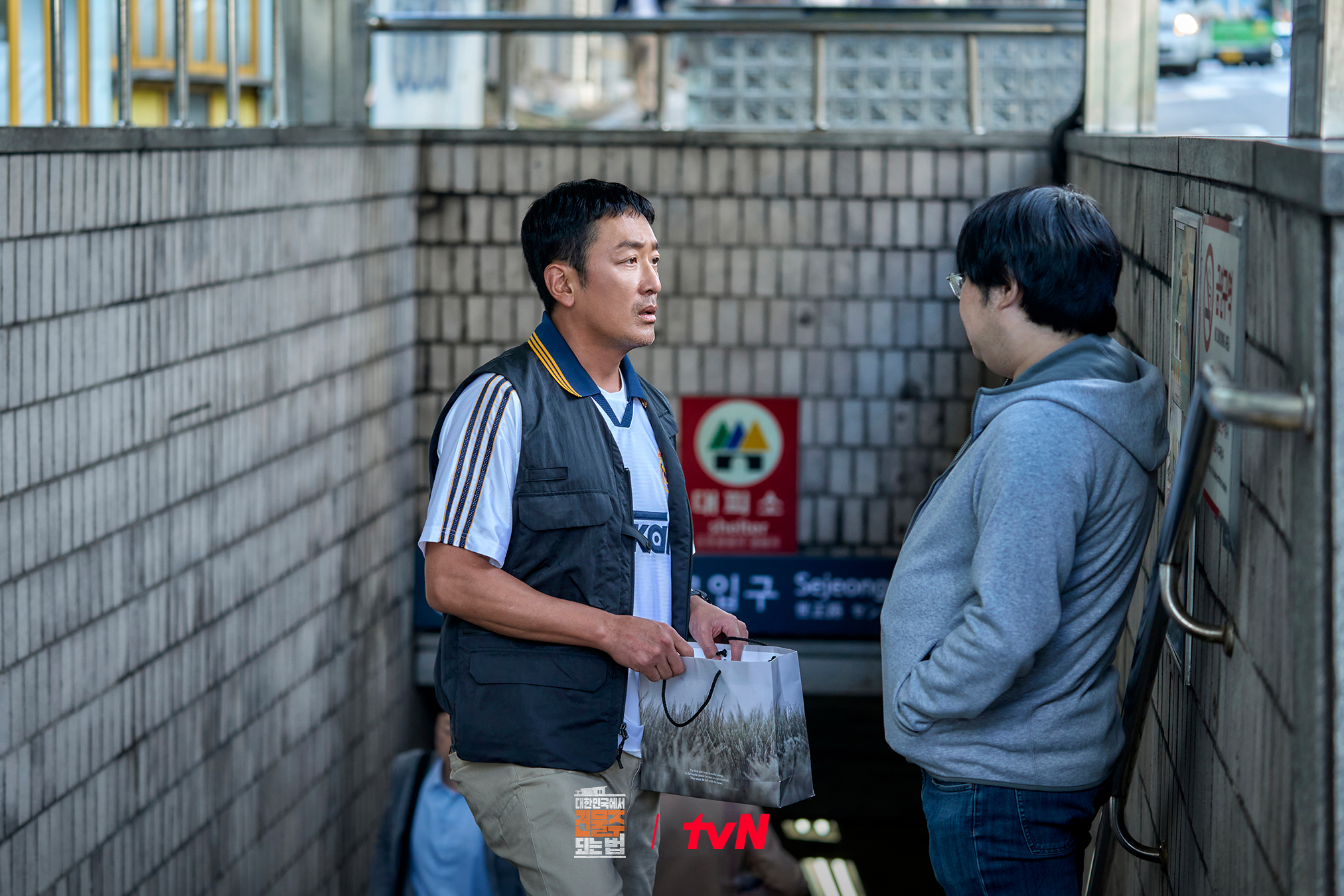 In the stills below, Ki Soo Jong leads a bittersweet daily life despite being a building owner. He rides his bicycle to his building, the Seyoon Building, and personally unclogs toilets when tenants report problems.