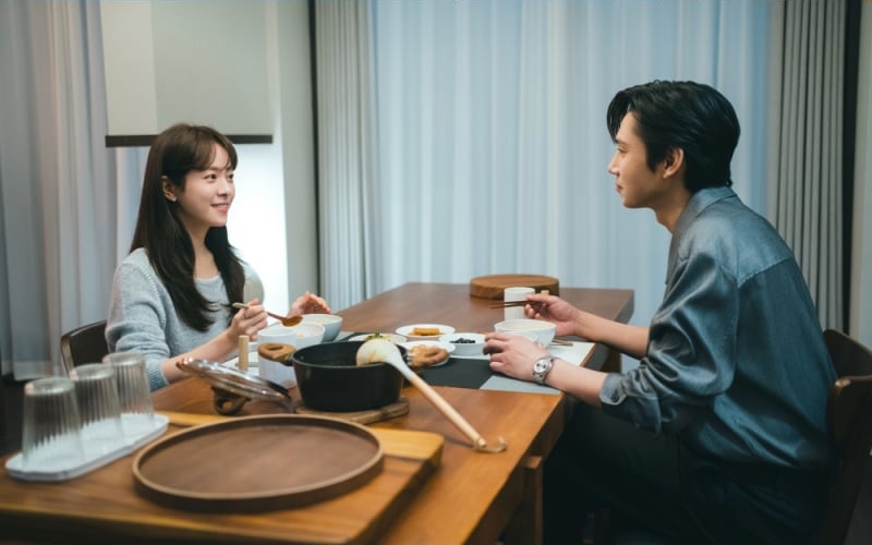 Notably, Lee Ui Yeong looks right at home in Song Tae Seop’s apartment, where she has decided to stay for the time being. With her supportive boyfriend by her side, Lee Ui Yeong looks completely comfortable as she relaxes in bed in her pajamas and chats with Song Tae Seop over a home-cooked meal.