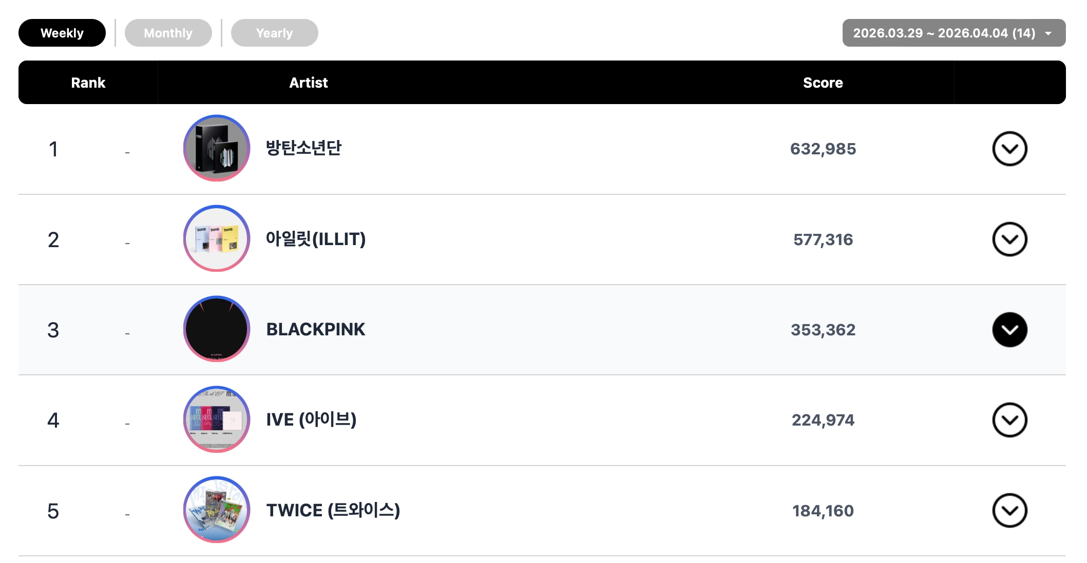 Weekly Global K-Pop Chart