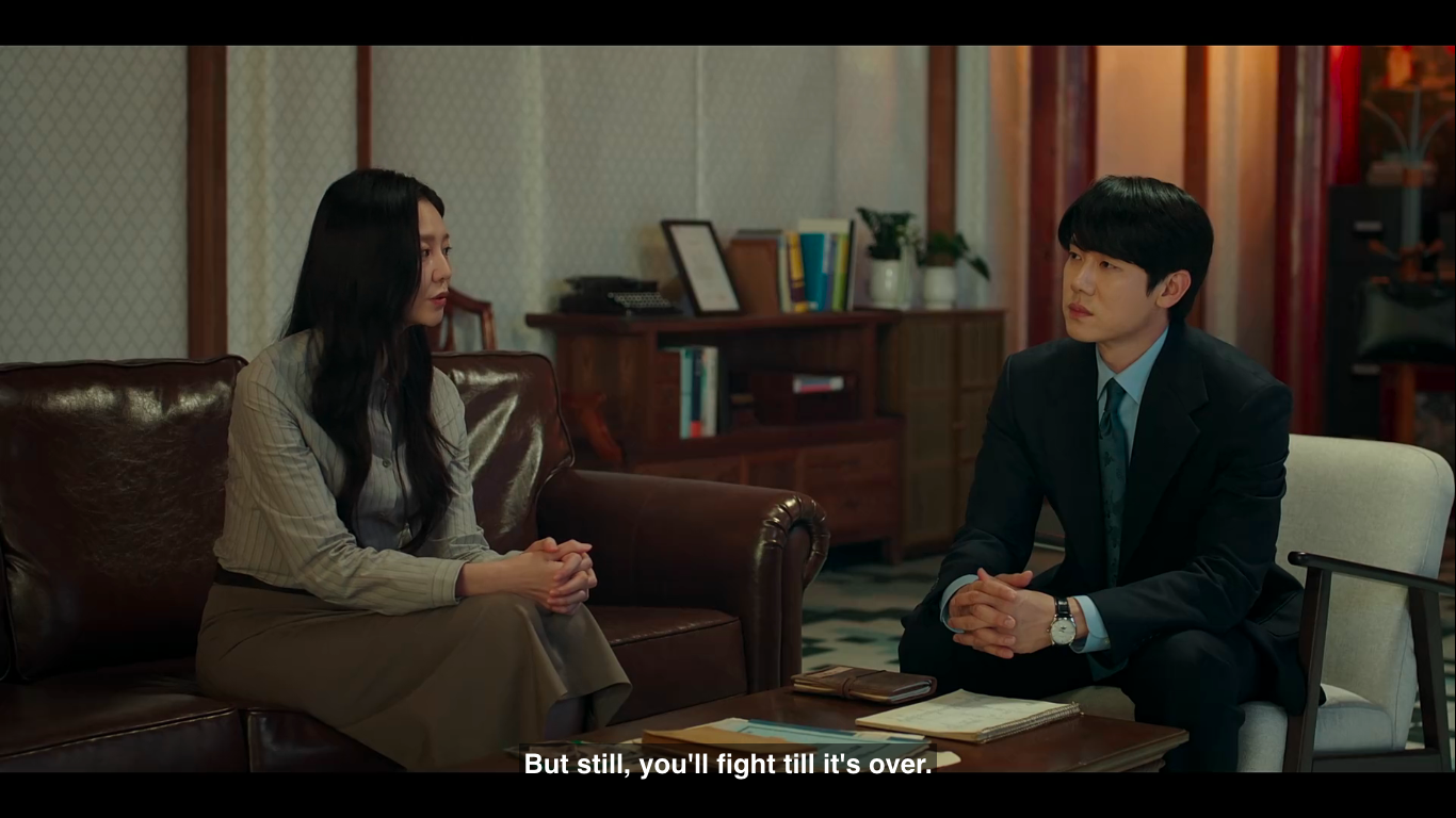 Completely on the same side now, Na Hyun and I Rang work together on a complicated inheritance case from a shoemaker man (cameo by Lee Deok Hwa) who passed away due to Alzheimer’s disease. The issue isn’t only tricky due to the money aspect but also due to the entangled relationship between the man, his wife, and a late friend who died after she was framed for being a North Korean spy. Furthermore, and as expected, the opposing side is none other than Yang Do Kyung (Kim Kyung Nam), who will stop at nothing to prove to his father what he is capable of.