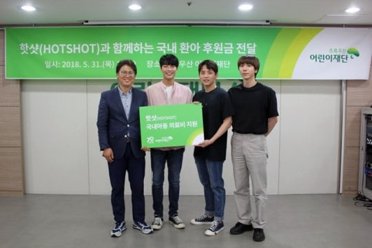 HOTSHOT recently spent some meaningful time with their fans! On May 31, HOTSHOT’s Yoonsan, Junhyuk, and Timoteo made a donation to the Green Umbrella Children’s Foundation in support of medical treatment for young patients. In order to raise money for donations, HOTSHOT had sold some of their personal items in a special event on their fan… Continue reading HOTSHOT Donates Together With Their Fans To Children’s Foundation