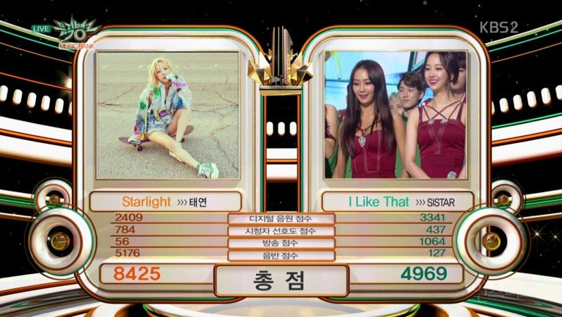 En el episodio del 8 de julio de “Music Bank”, “Starlight” de Taeyeon y “I Like That” de SISTAR competían por el primer puesto. Taeyeon terminó ganando con 8 425 puntos. Ya que no había actuado en el programa, no estaba ahí para recoger el trofeo. En el episodio de hoy podemos ver las actuaciones… Continue reading Taeyeon consigue su primera victoria con “Starlight” en “Music Bank”, actuaciones de BEAST, Wonder Girls, SEVENTEEN y más